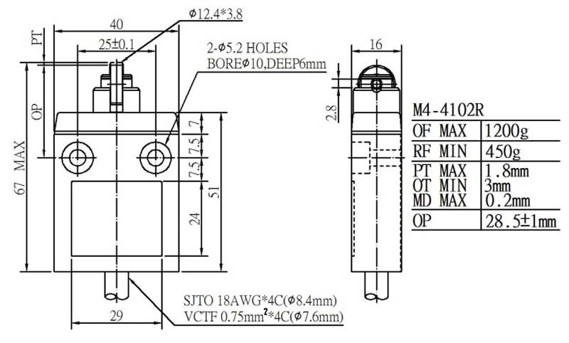 M4-4102R-2L Cross Roller Plunger Moujen Limit Switch