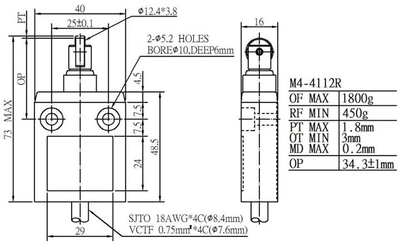 M4-4112R-2L Boot Sealed Cross-Roller Plunger Head Moujen Limit Switch