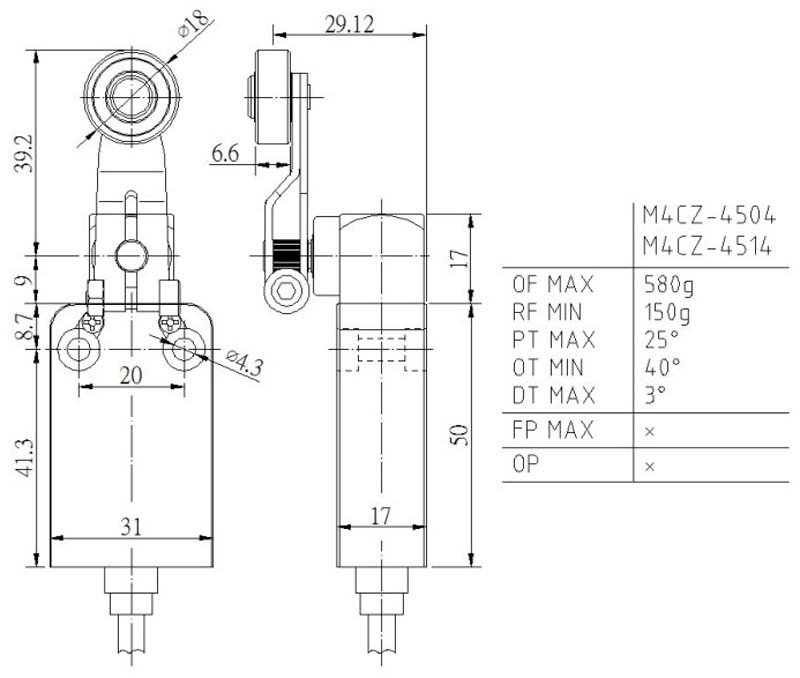 M4CZ-4504-1L Side Rotary Arm Roller Lever Crank Mini Enclosed Moujen Limit Switch