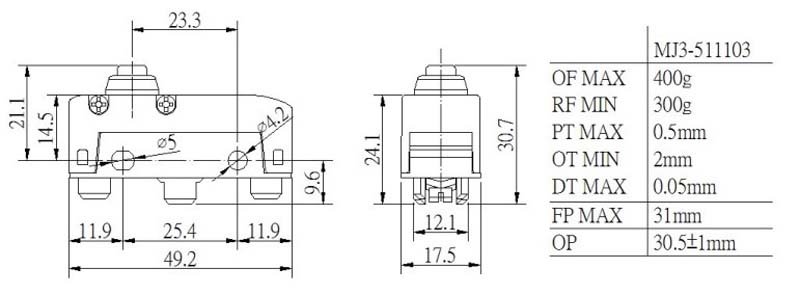 MJ3-511103 Compact Over Straight Low Profile Overtravel Short Spring Plunger Moujen Micro Switch