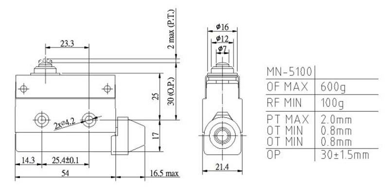 MN-5100 Short Top Push Plunger Moujen Limit Switch