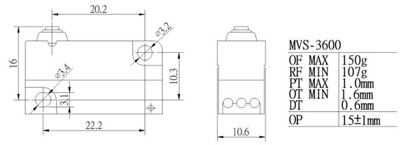 MVS-3600 No Lever Pin Plunger Moujen Positive Break Micro Switch